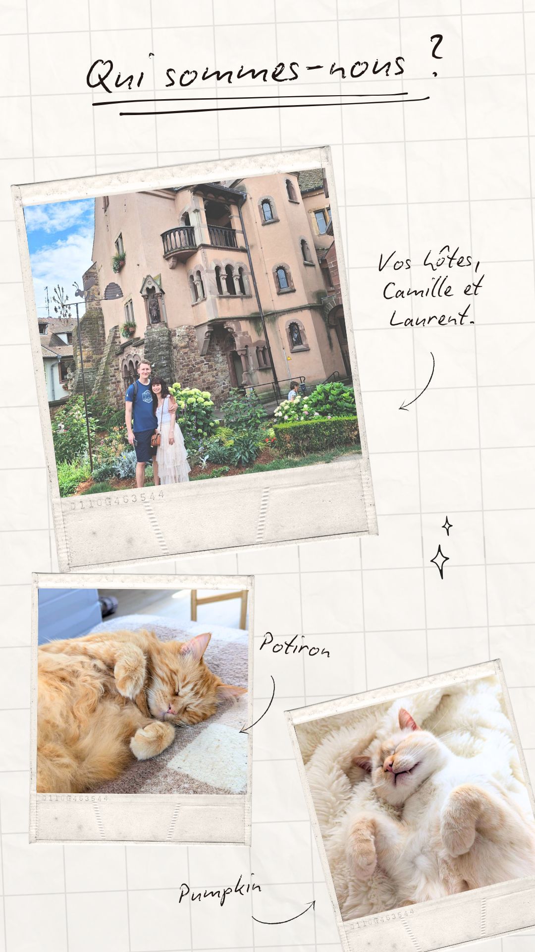 Camille, Laurent, Potiron et Pumpkin 🐾 sont heureux de vous accueillir aux Écrins !